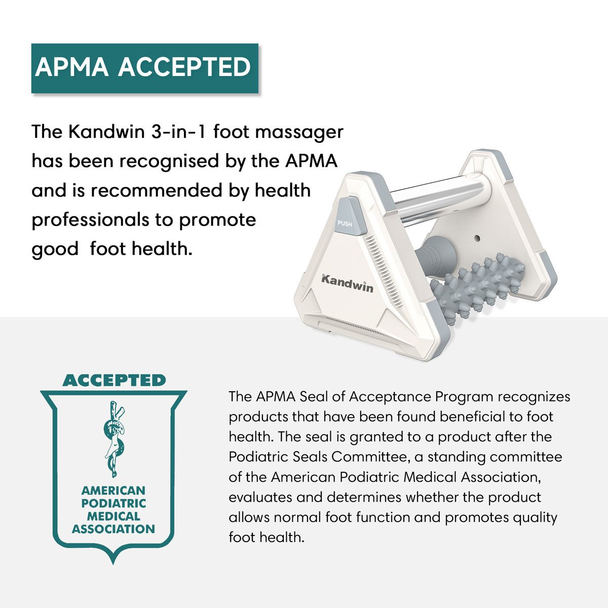 Kandwin is specifically designed to relief foot pain. Our 3 in 1 foot massaging system targets plantar fasciitis, tired feet, sore arches and muscle tension.