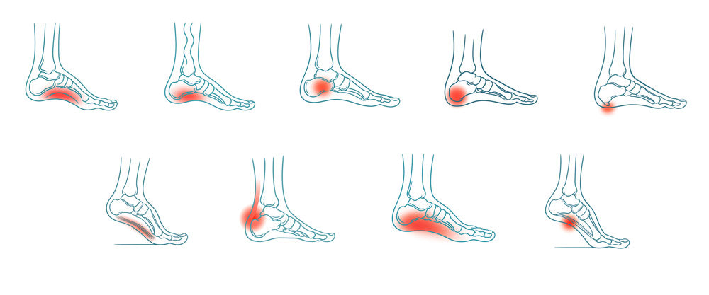 Achilles Tendonitis, Arch pain, Circulation Issues, General Foot Pain, Heel Pain, Heel Spurs, Plantar Fasciitis and Neuropathy.